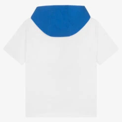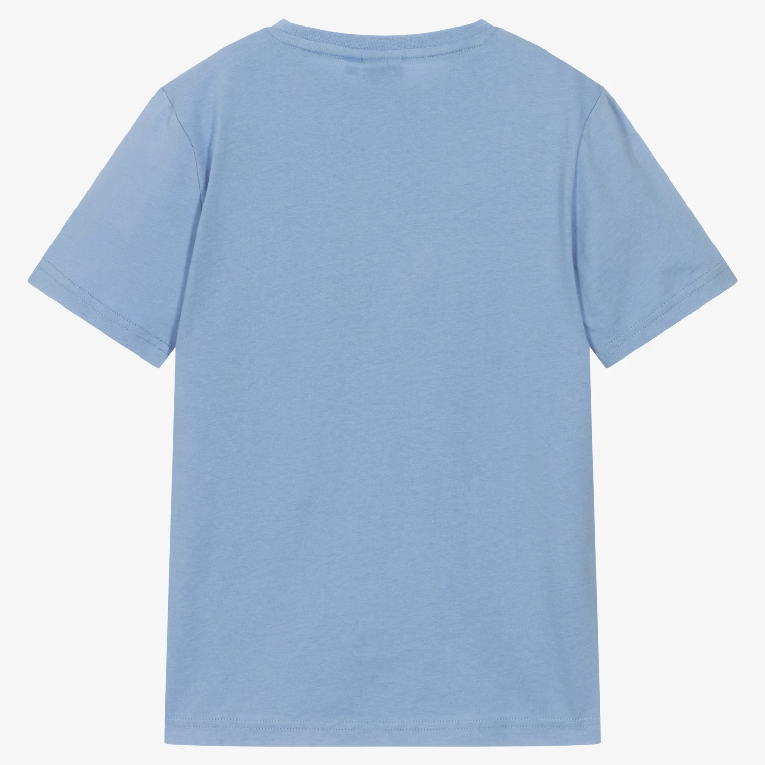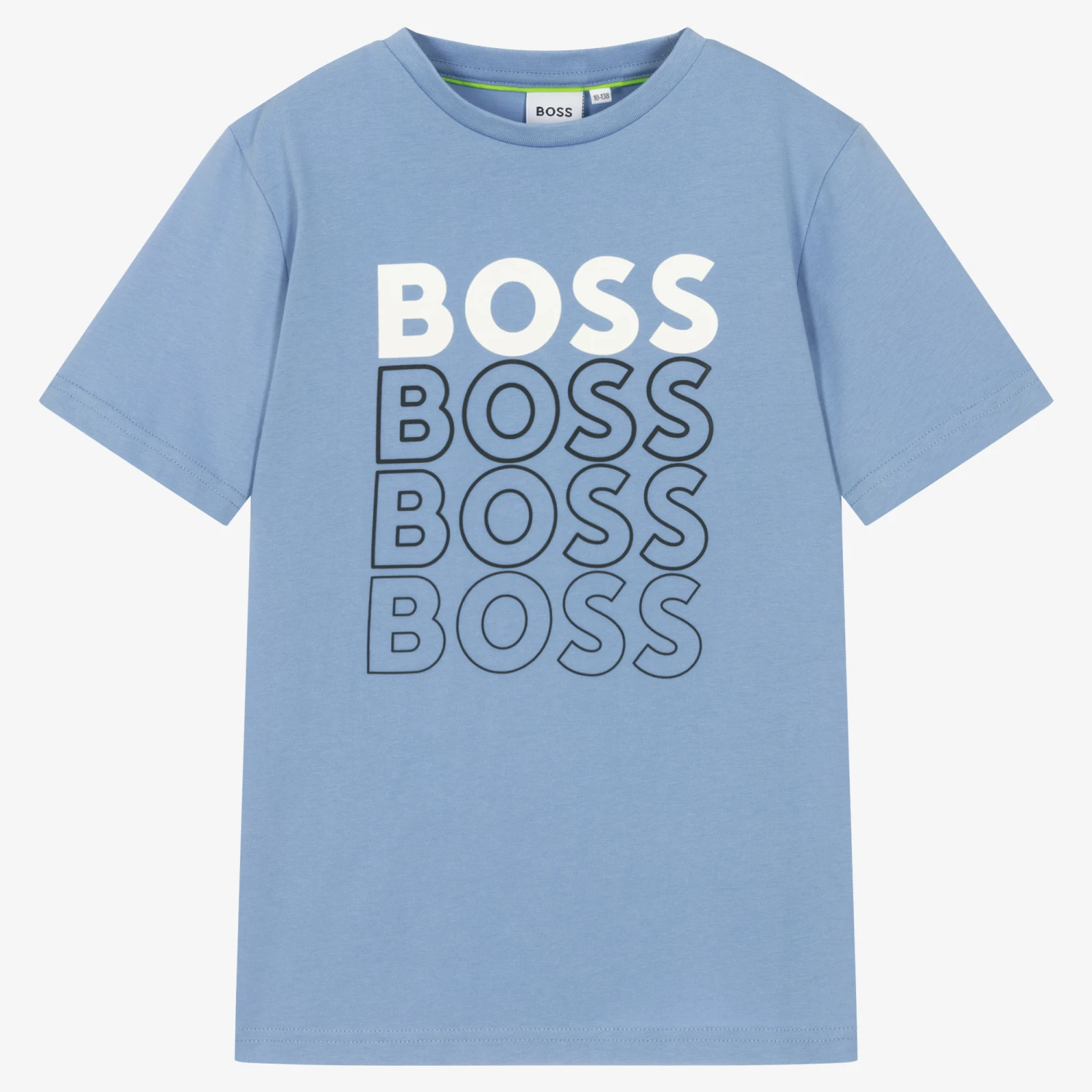 As seen in the main collection, this teen boys blue T-shirt from BOSS is made in soft cotton jersey. Sporty in its design, there is a black and white repeat rubber logo print on the front.