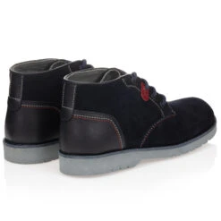 Navy blue sneakers for teen boys by BOSS Kidswear, with a soft knitted upper. As seen in the adult collection, these smart-casual sneakers have a logo printed in white on the side and a badge stitched on the tongue. They have reflective patches, blue and yellow striped laces and blue leather trims. There is a yellow heel pull and leather heel trim with an embossed logo.