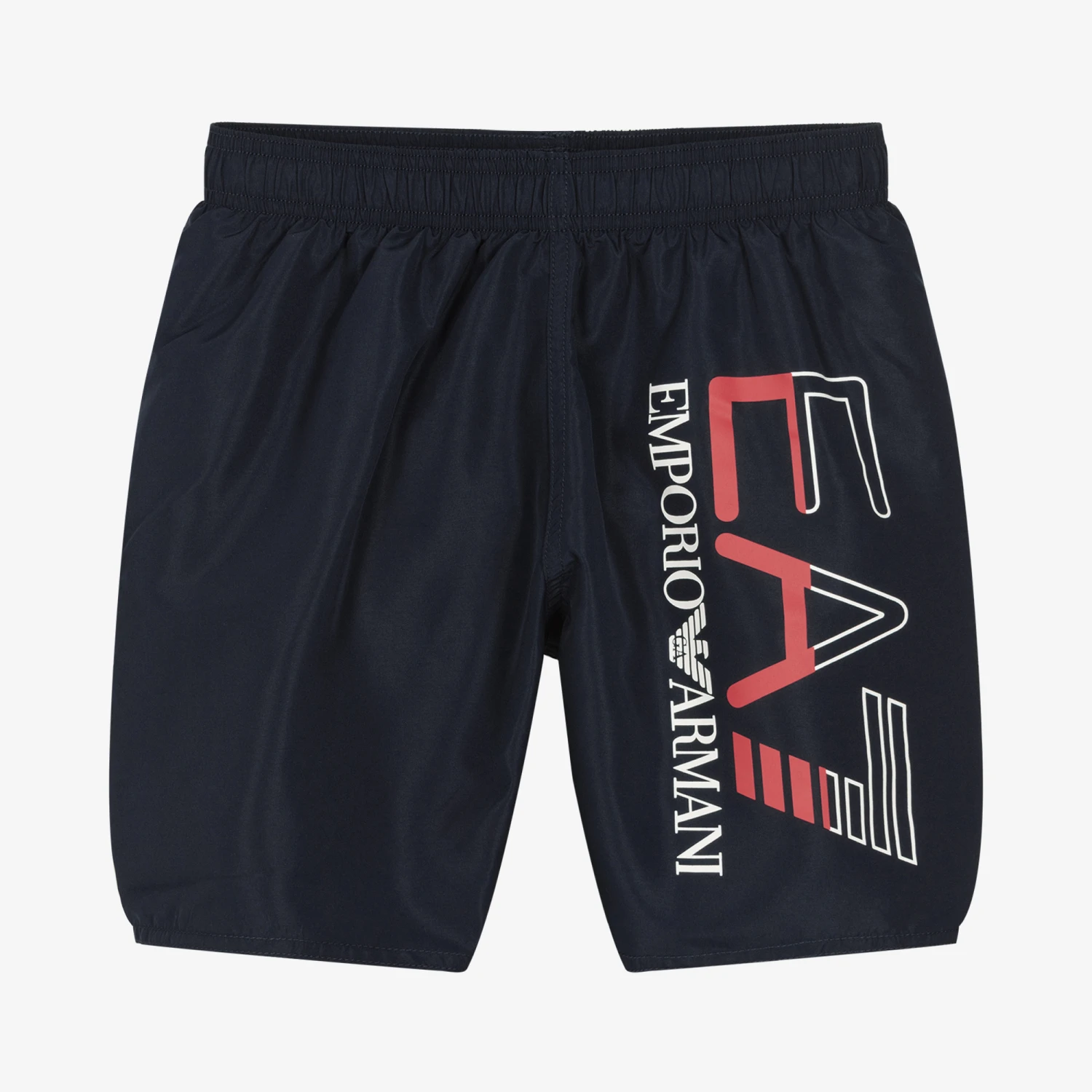 From EA7 Emporio Armani, these navy blue swim shorts for teen boys have an oversized EA7 logo print on one leg. Lined with soft mesh for added comfort, these silky lightweight swim shorts can be adjusted with an internal drawstring for a better fit.