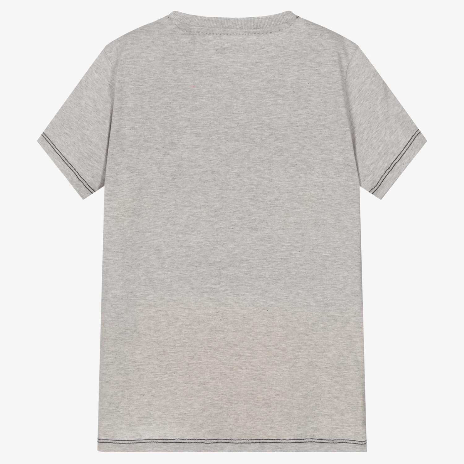 Teen boys grey T-shirt by Guess, detailed with a printed logo on the front. Striped in red and navy blue, it is made in super soft organic cotton jersey so this lightweight tee is incredibly comfortable to wear.