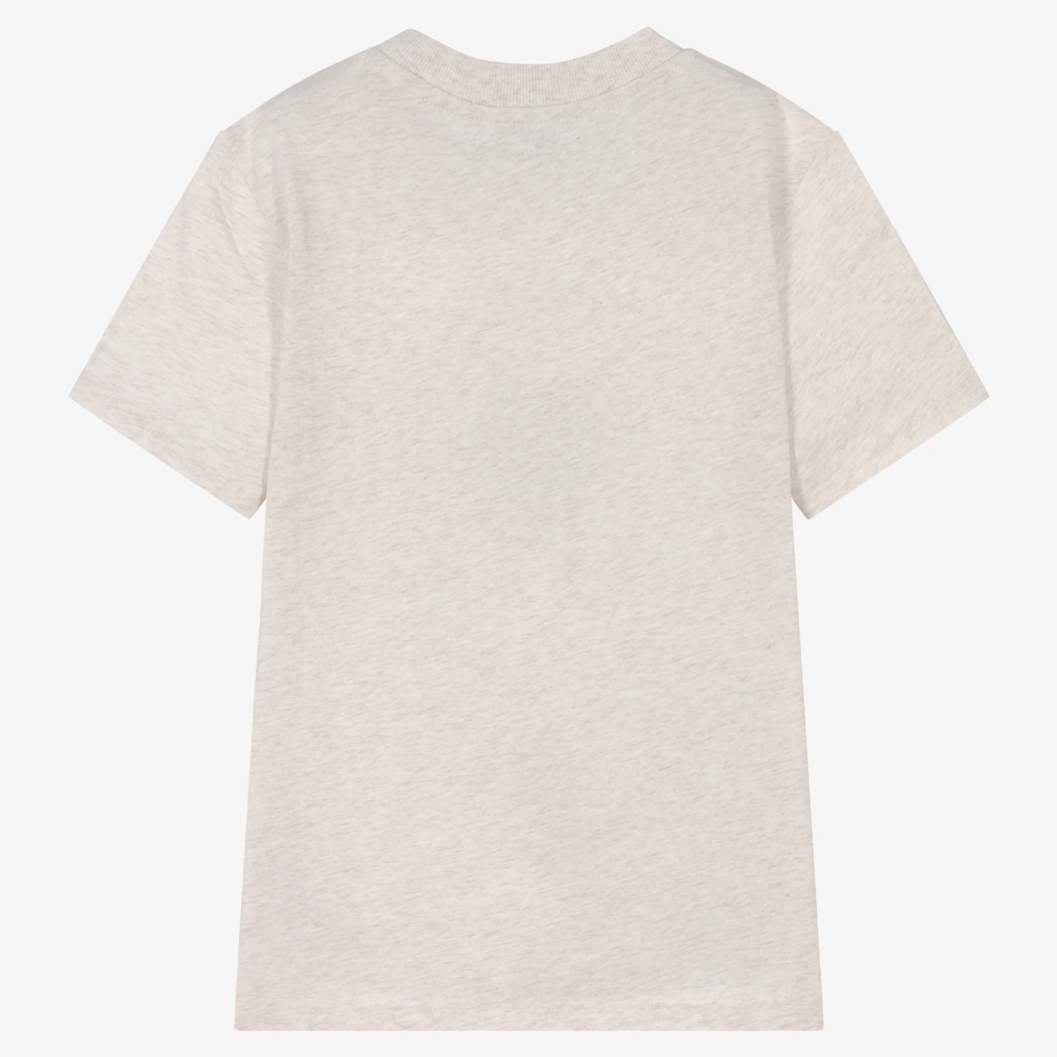 For teen boys from KENZO KIDS, a beige marl T-shirt instantly recognisable with a large monkey print and red logo patch. Cool and casual, made in soft organic cotton jersey it is a wonderful addition to a designer T-shirt collection.