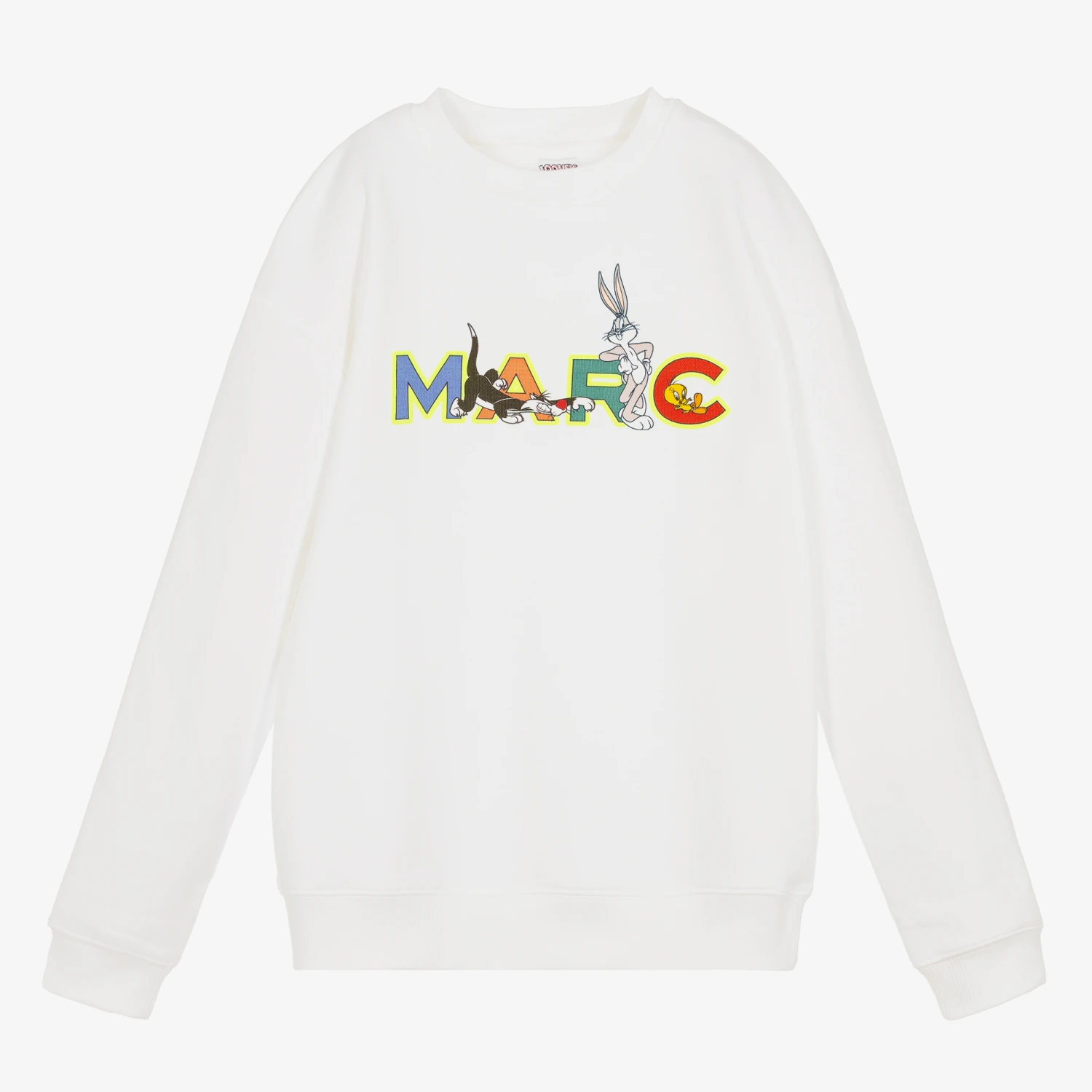 In collaboration with Looney Tunes, this white cotton sweatshirt for teen boys and girls is from MARC JACOBS. The brand’s signature logo is printed in colourful letters on both sides, outlined with neon yellow edging for a distinctive style. Adding fun to the design, cartoon characters including Sylvester, Bugs Bunny and Tweety Pie are mischievously pictured within the logo. This jersey top is easy-to-wear, making it ideal for casual days.