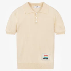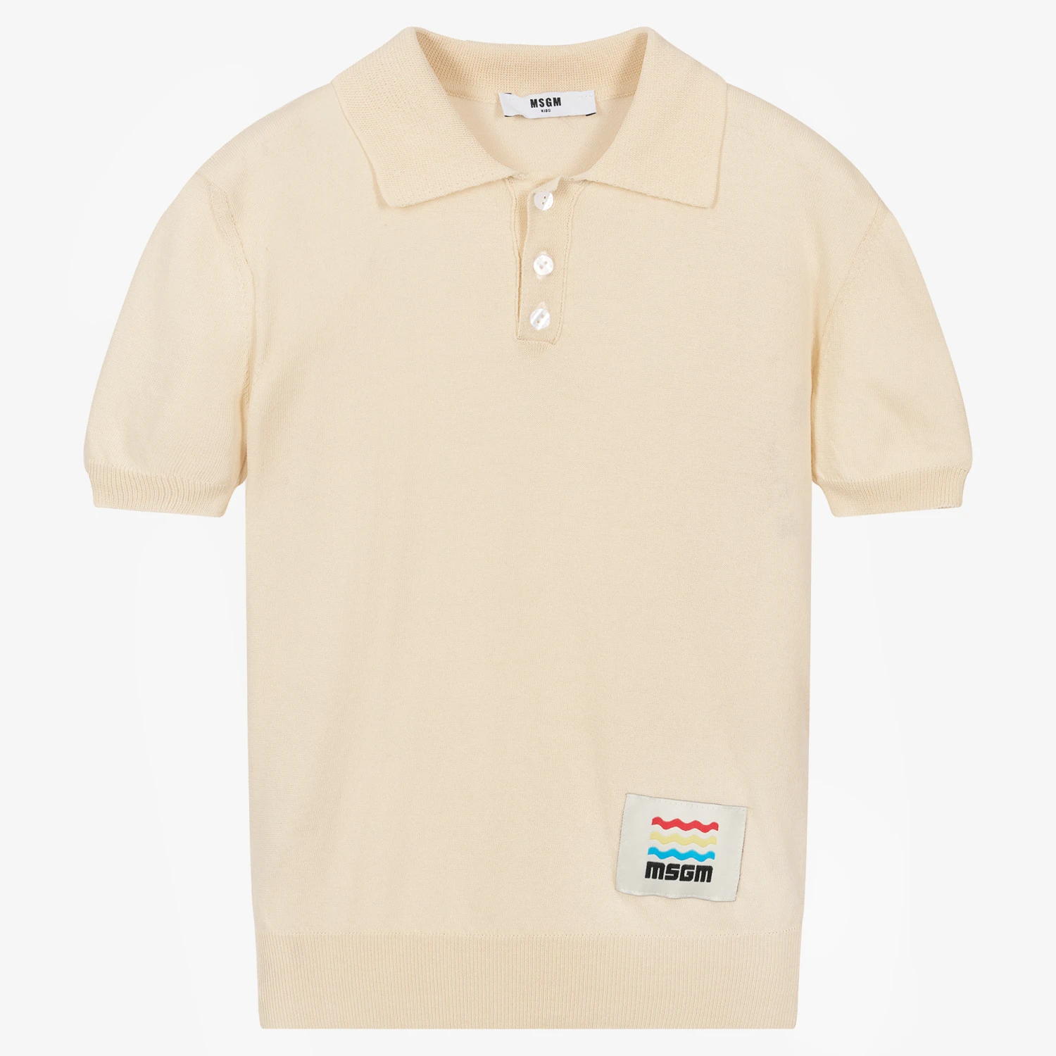 Light beige polo shirt for teen boys from MSGM, with a logo patch on the front and branded buttons. Knitted in cotton, it is an alternative take on a classic style.