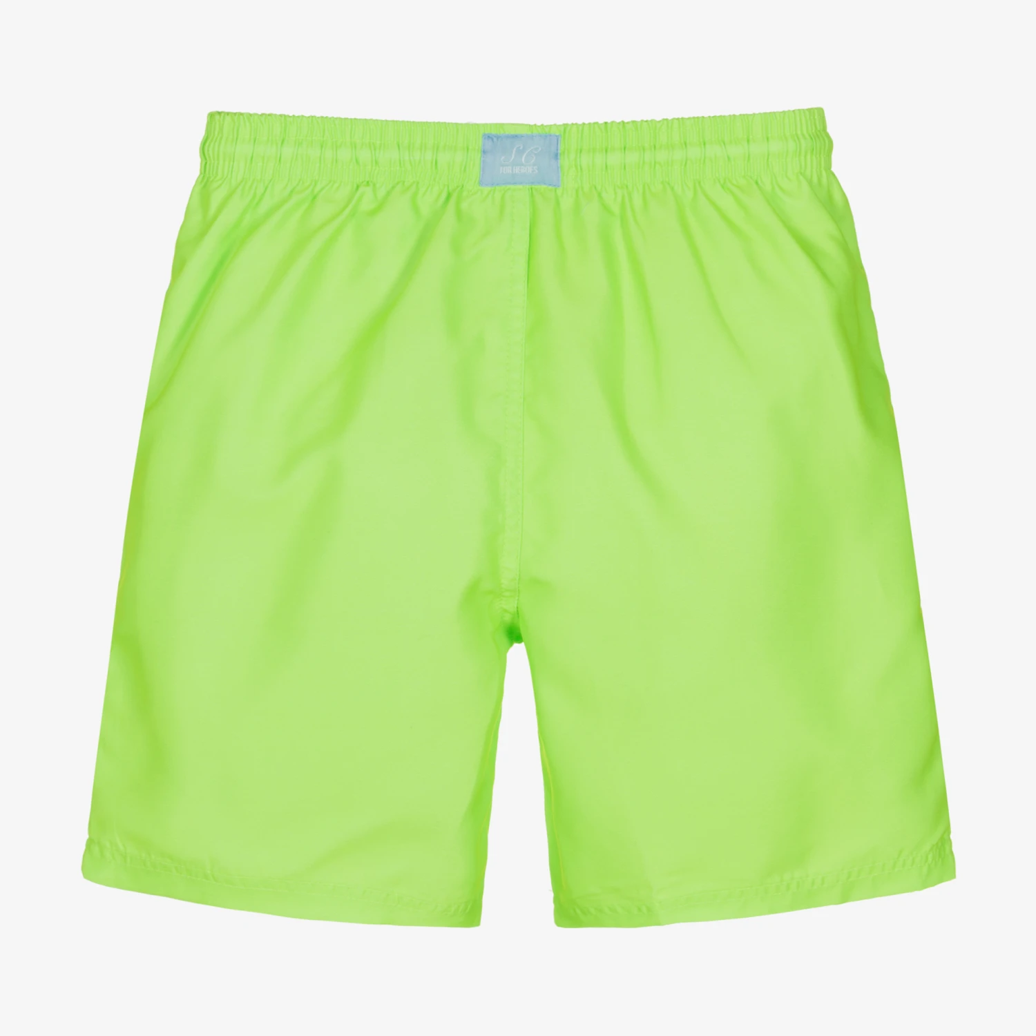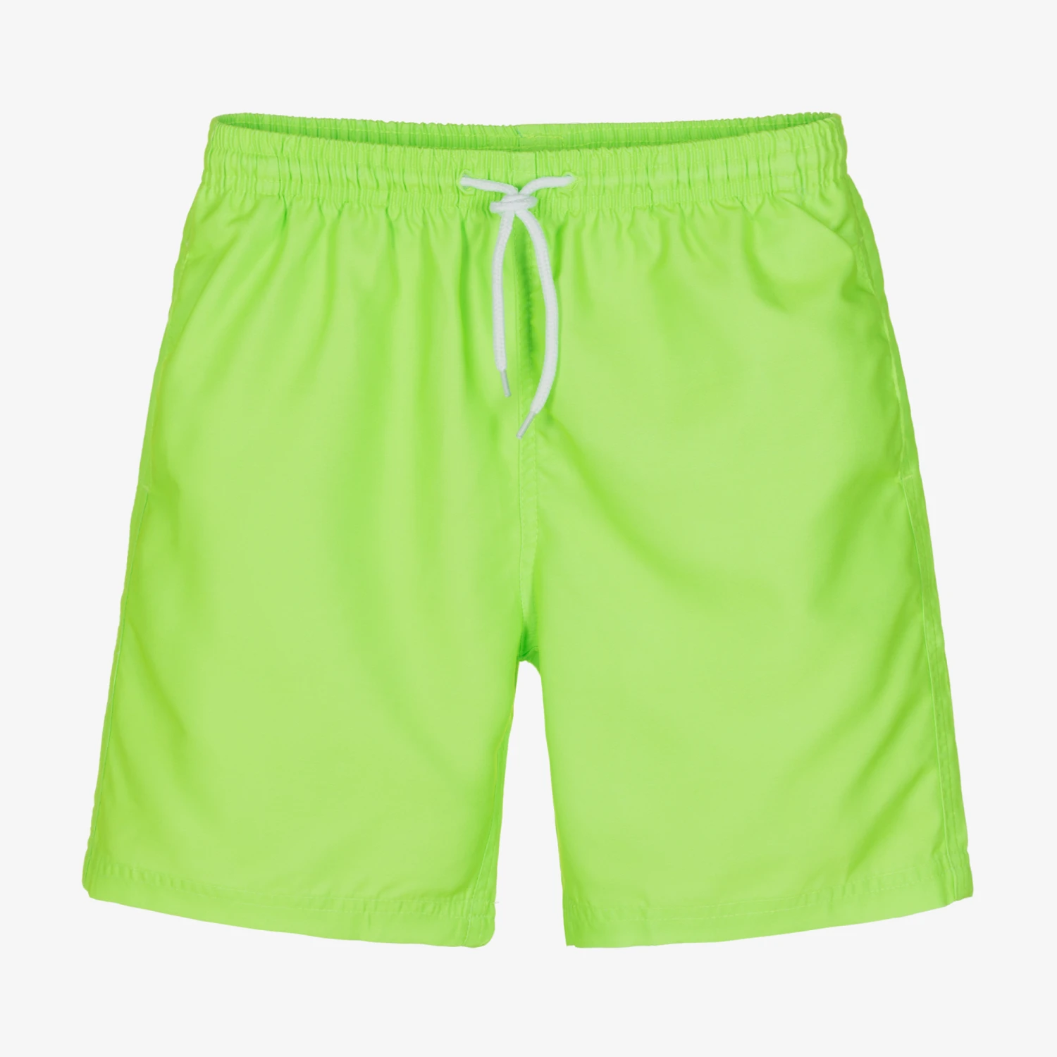 Teen boys will stand out in these bright neon green swim shorts by American brand Stella Cove. Silky soft, they have a white drawstring waistband for a good fit, with a pale blue logo badge around the back. There are useful side seam pockets and comfortable mesh lining.