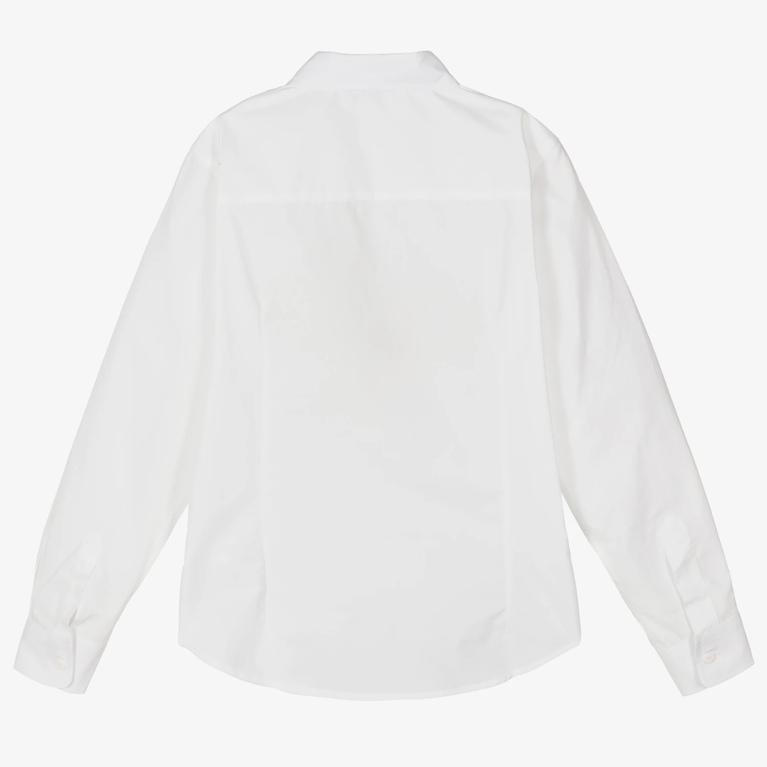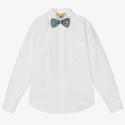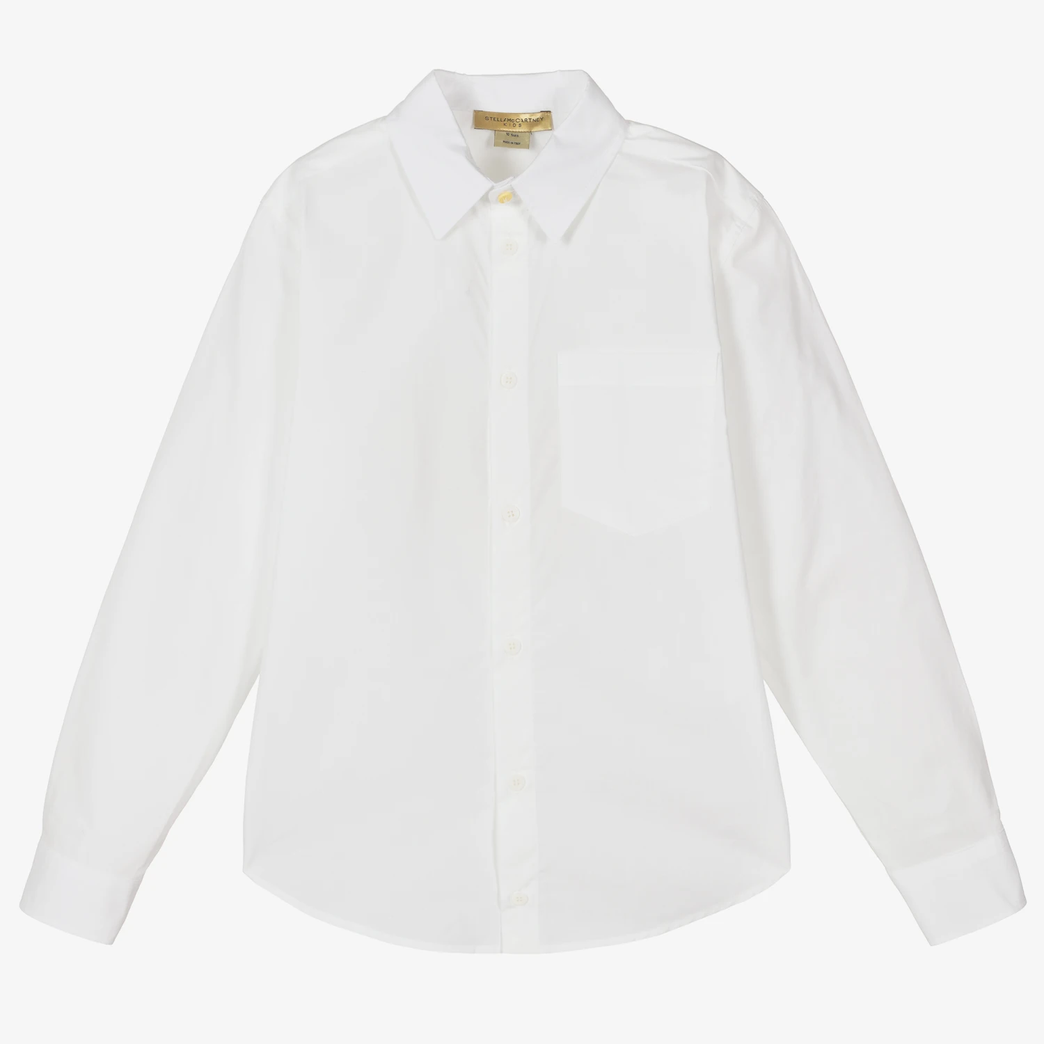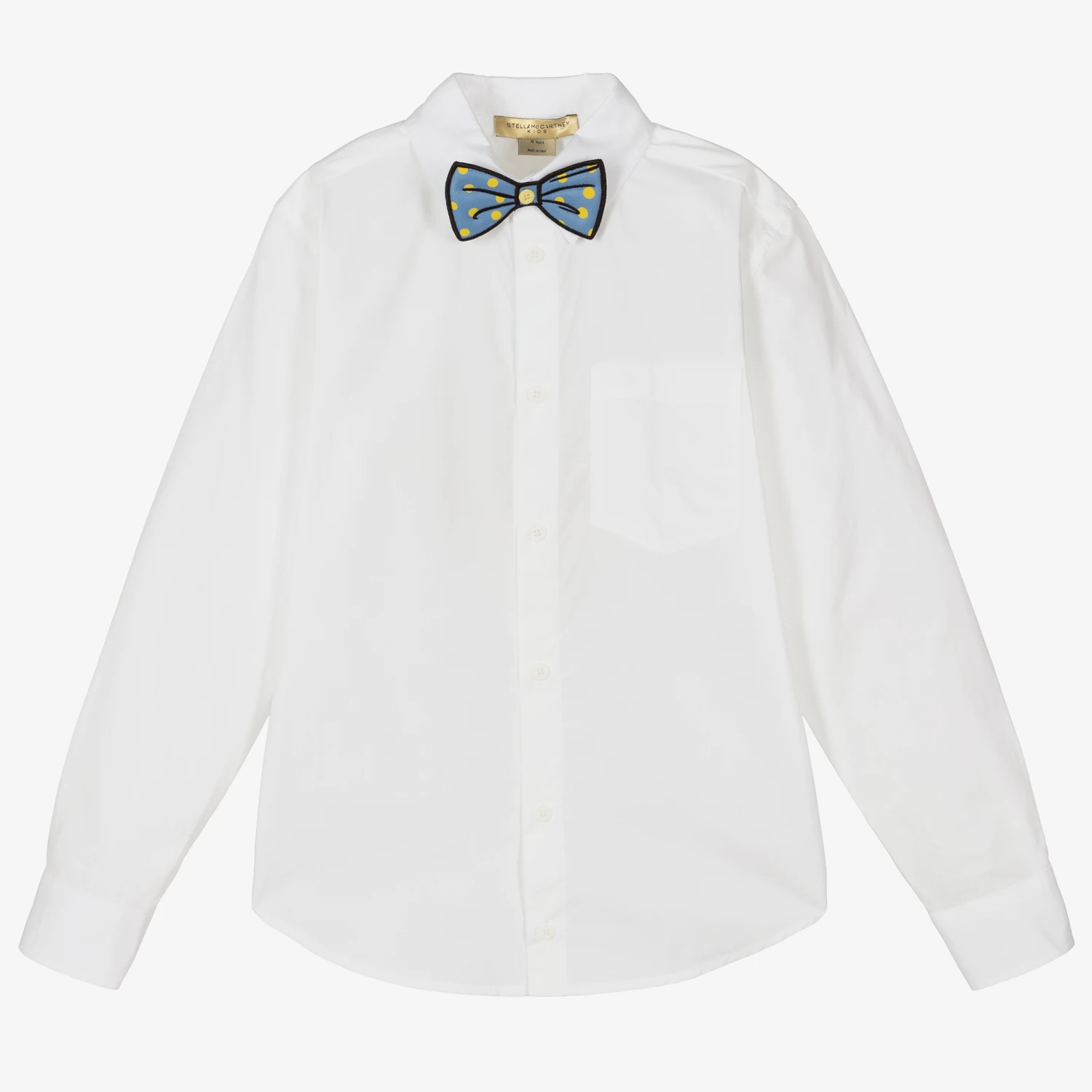 A great party staple for teen boys, this white shirt is by sustainable fashion designer Stella McCartney Kids. Made in lightweight organic cotton poplin, this long-sleeved design has front button fastenings, barrel cuffs and a patch pocket on the chest. Adding a pop of colour, it comes with a detachable bow tie in a blue and yellow polka dot pattern. The embroidered black outline gives it a cartoon-inspired, three-dimensional finish. The Stella McCartney fit can be quite small so choose a size up if you want room to grow.