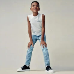 Calvin Klein Jeans Teen Boys Mid-Blue Straight Leg Denim Jeans