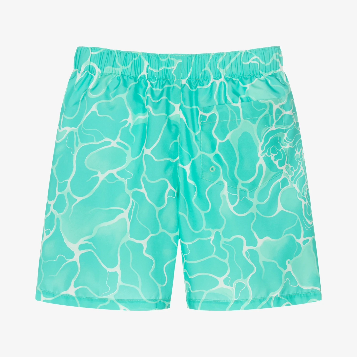 Summer-inspired turquoise blue swim shorts for teen boys, by luxury Italian brand Versace. Look stylish by the pool in these logo-inspired swim shorts, with a white water pattern infused with the Medusa icon and a gold logo print on one side. Silky smooth, they have a useful mesh lining and a stretchy waist for comfort.